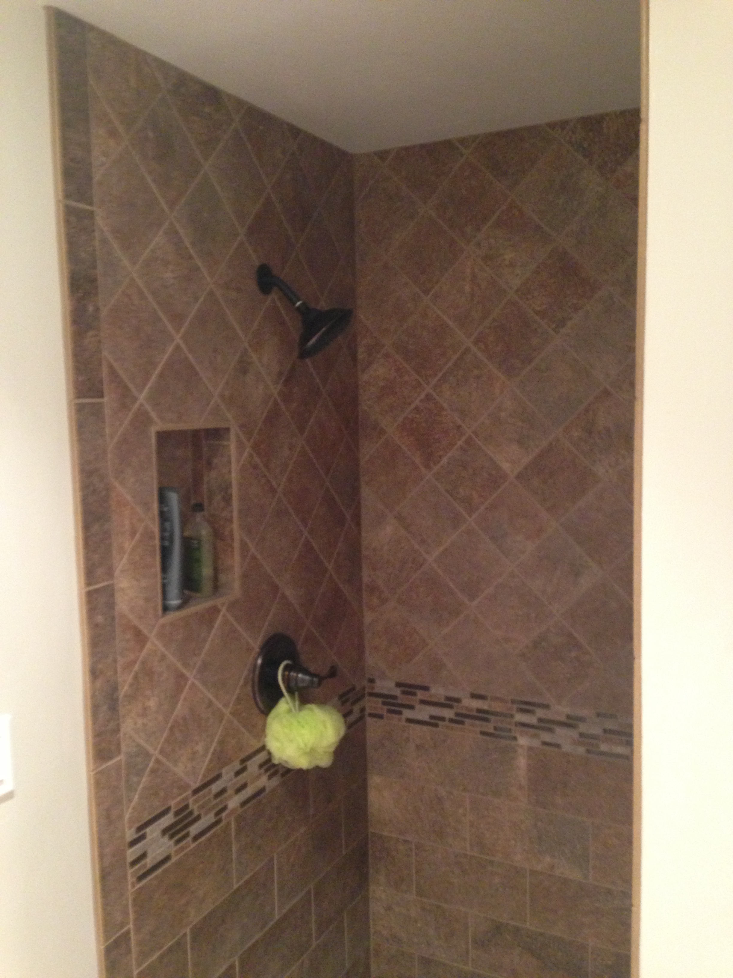 This bathroom started out as a poor excuse for a master bathroom. It was small and ill-configured to the point that only one person could be in it at a time. We pushed the wall out 15″ into the front yard, added a pocket door to save space, and reconfigured the entire room.